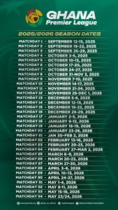 The dates for the 2025/26 Ghana Premier League season has been released.