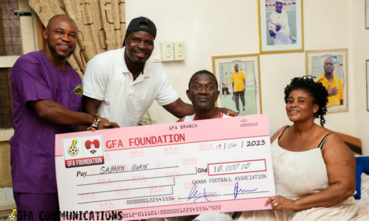 The GFA Foundation has paid visits to former Black Stars Team Manager, Sabahn Quaye and a former player, Thomas Quaye at their residences in Accra. The Foundation also donated GHS10,000.00 each to them.