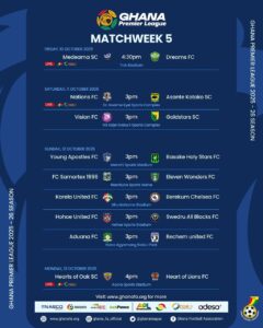 Ghana Premier League: TV schedule for Matchday 5 announced