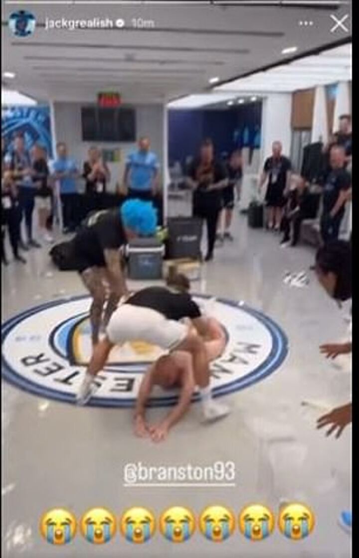 England star Jack Grealish showcased a video of club kitman Brandon Ashton stripping down to his boxers and sliding across the changing room – which has become a tradition among the side.