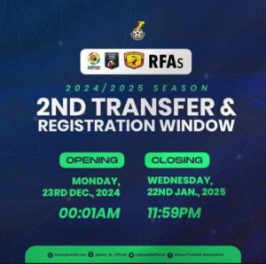 Registration window for the Ghana Premier League, Access Bank Division One League, Women’s Premier League and the Regional Football Associations officially opens today with clubs encouraged to strengthen their squads for the rest of the season.