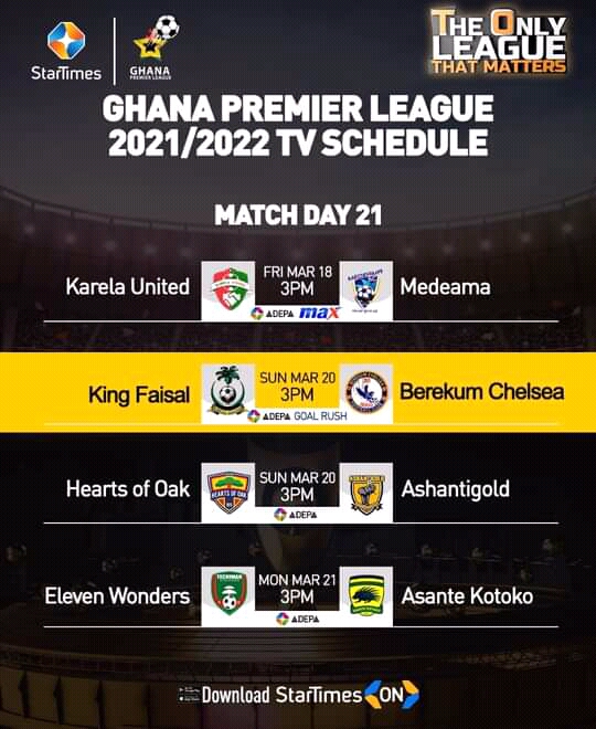 Ghana Premier League Broadcast Right holder Startimes Ghana have released the TV schedule for the upcoming Matches that is MatchDay 21