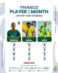 Three players have been shortlisted for the NASCO Premier League Player of the Month award for January, following their decisive contributions to their respective clubs’ performances during the month.